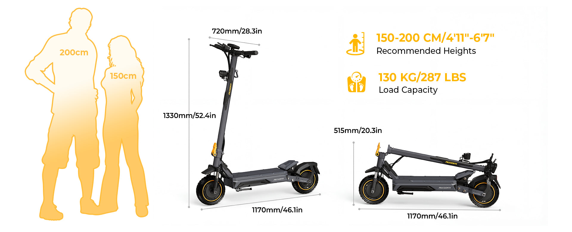 The extra-wide 520x185 mm deck offers a stable and roomy footing for your electric scooter, accommodating both gear and passengers weighing up to 130 kg securely. Balance effortlessly while commuting to work or running errands, enhancing safety and ease as you navigate busy sidewalks.