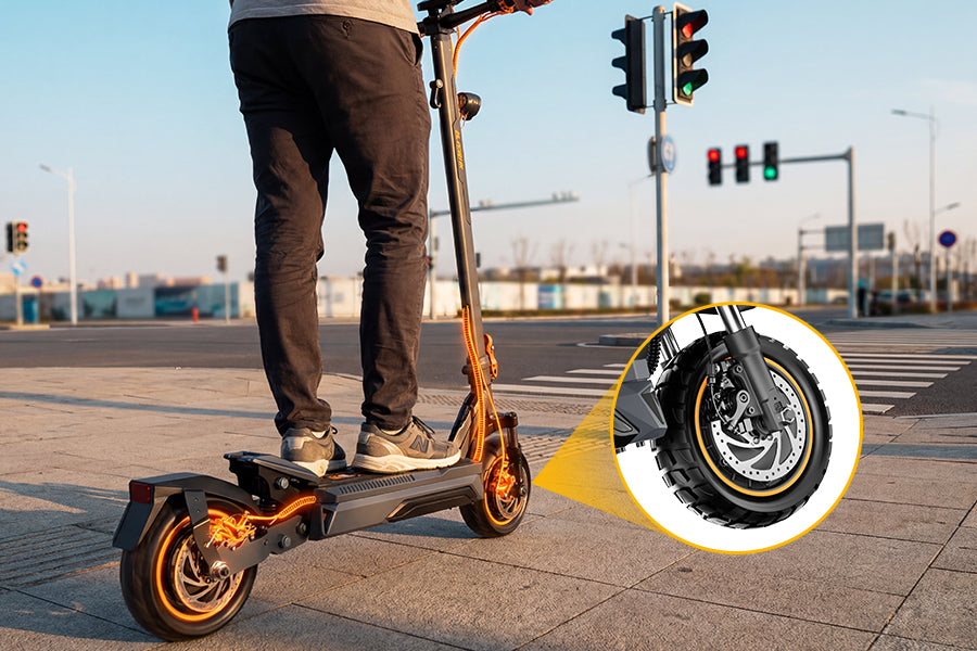 The 10"x2.75" tubeless tires deliver exceptional puncture resistance, superior traction on wet or rough terrain, and effortless rolling. Maintain confidence and low maintenance during fast urban rides or adventures—keeping your e-scooter reliable mile after mile.
