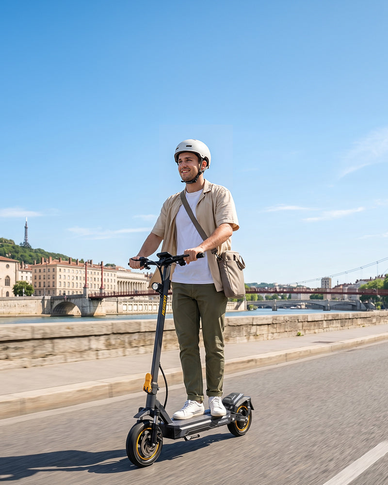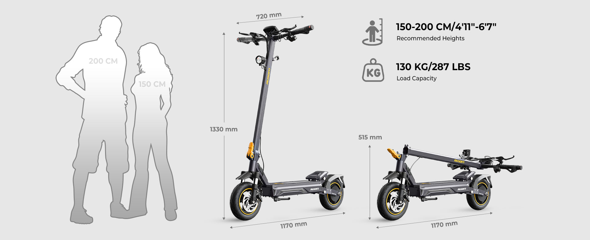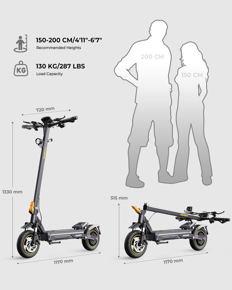 Stand naturally and comfortably on the extra-wide 520×185 mm deck with ergonomic swallow-shaped handlebar. This design ensures perfect balance and reduces leg fatigue, even on longer commutes or when carrying a backpack.
