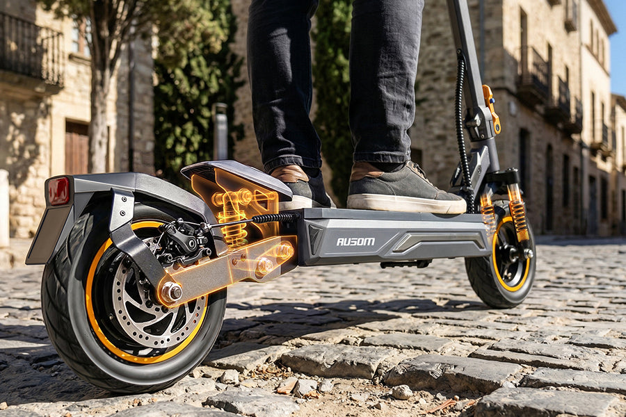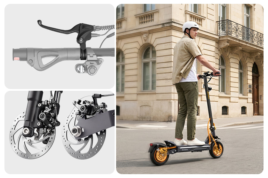 Crafted from aerospace-grade materials, the ShocFree® suspension system combines a high-strength front fork with an adjustable rear swingarm suspension, ensuring exceptional durability, improved shock absorption, and stable handling. Paired with 10-inch tubeless tires, the K20 electric scooter minimizes vibrations and enhances comfort across rough or uneven terrain. With the K20 Single Motor, you’ll enjoy a smoother, more controlled ride whether you're cruising city streets or tackling imperfect roads.