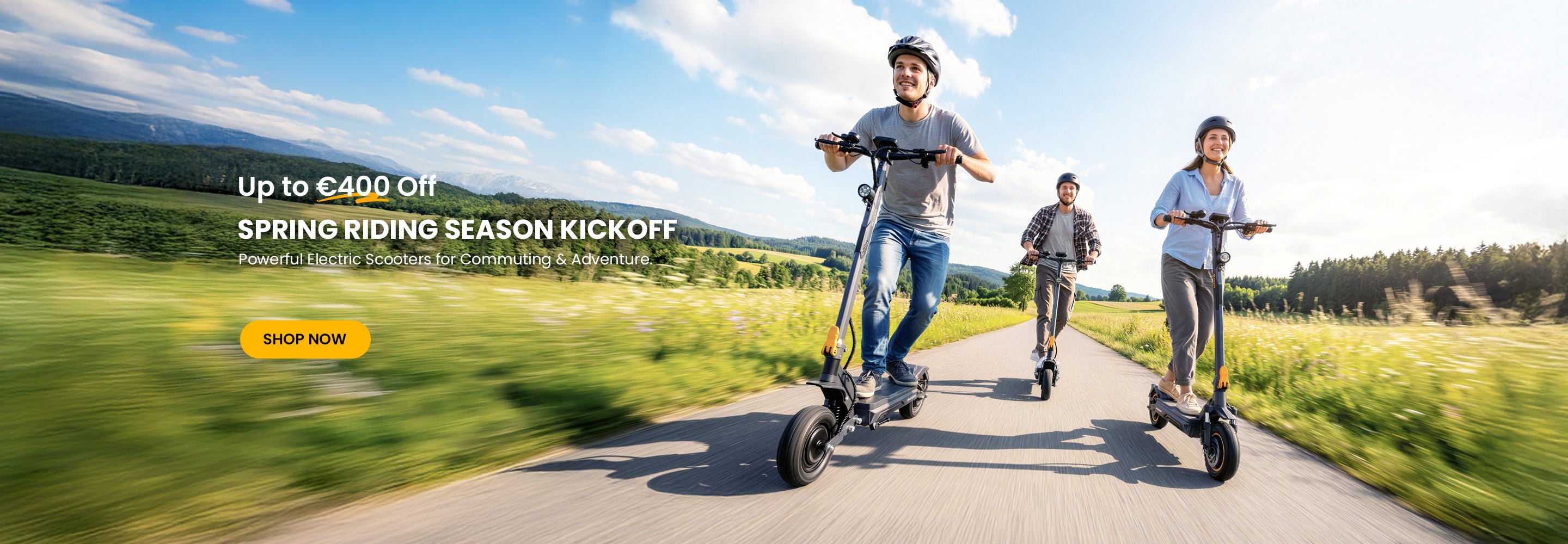 Dual 1100W motors, 115 km range, 68 km/h top speed. All-terrain tires, advanced suspension, hydraulic brakes, full lighting, quick fold, dual charging—built for power and adventure.