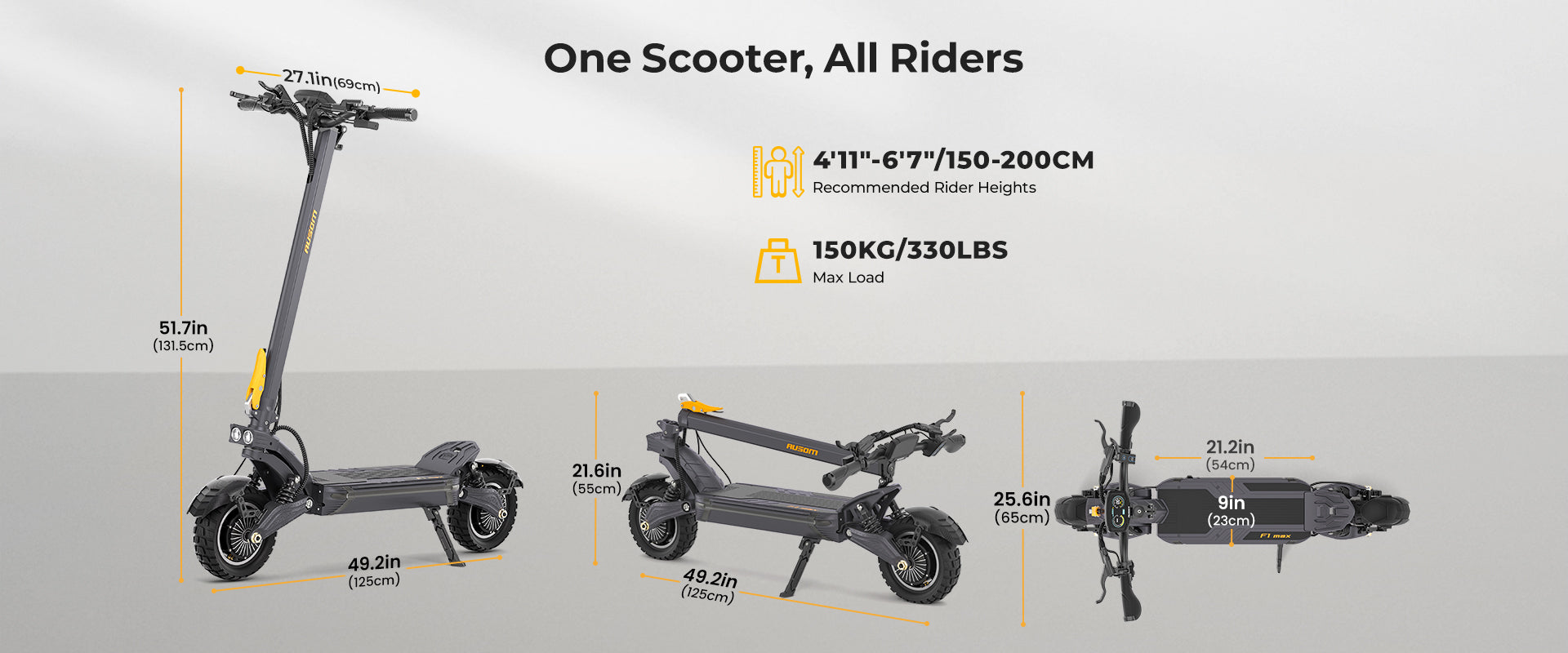 The F1 Max folds quickly and securely, making it perfect for trunk storage or carrying onto public transportation like buses and subways. Its compact folding mechanism makes it an ideal choice for urban riders who prioritize portability and convenience.
