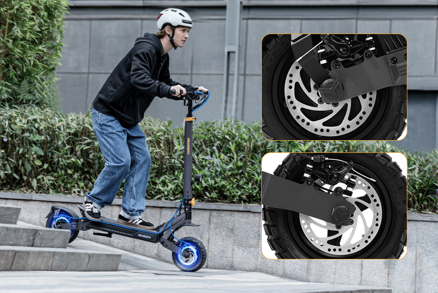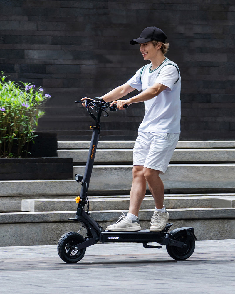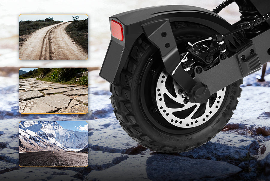 Equipped with 10"×2.75" tubeless tires for reliable grip and puncture resistance. These tires provide steady control across varied terrains—from asphalt to cobblestones—so you can ride without slipping or flat tires.