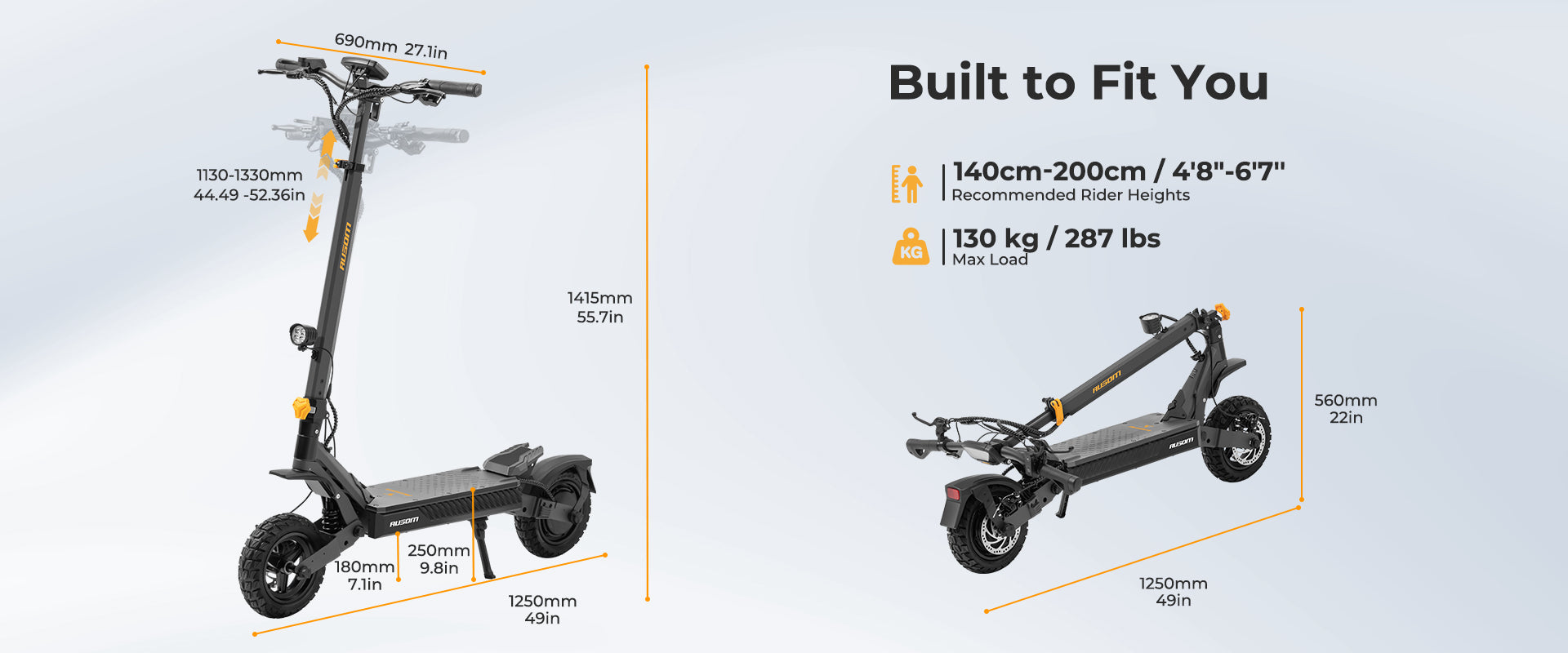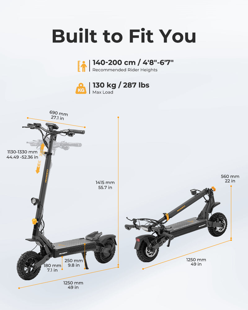 Customize your ride with the adjustable handlebar (1130–1330 mm/ 44.5-52.4 in), suitable for different rider heights. Designed for comfort and control, it ensures an agile and confident posture on every trip.