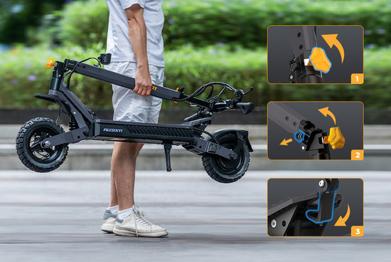 The user-friendly folding system allows you to fold the scooter in seconds for easy storage, making it perfect for trunks or tight spaces. The innovative double-folding mechanism remains stable when unfolded to minimize wobbling and ensures even weight distribution for safe carrying when folded.