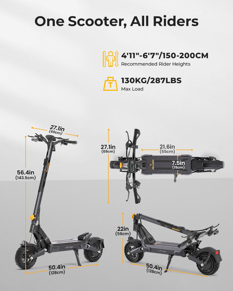 The Ausom L2 Max off-road scooter boasts a high-security braking system that utilizes E-ABS technology and dual disc brakes, providing responsive and reliable braking performance to maximize riding safety.